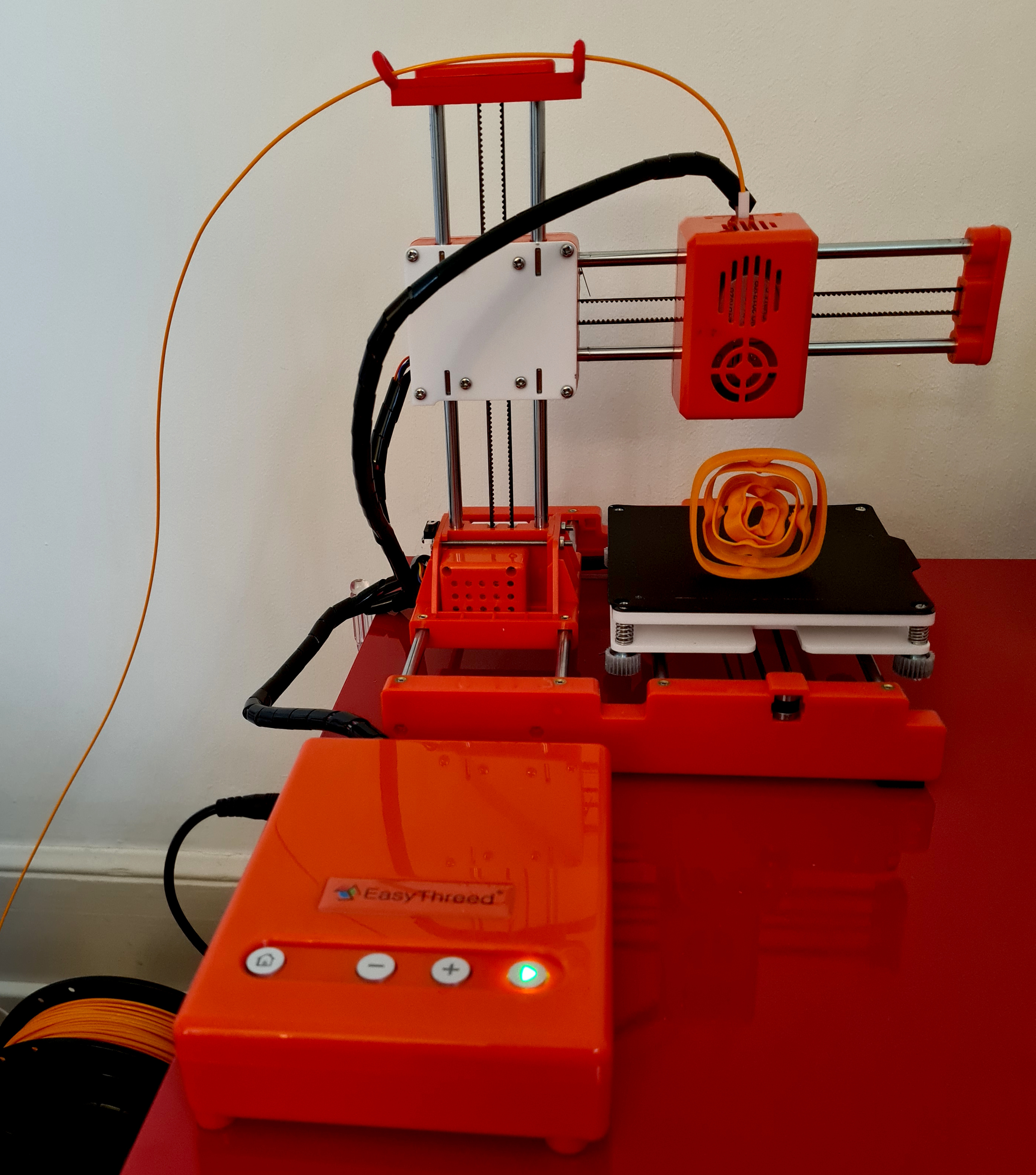 Ever since first seeing reviews of the Easythreed X1 budget 3D printer I had been wondering just how usable such a cheap device could possibly be. My frankensteined Anet A8 is my 3D print workhorse, but it's rather bulky and since I don't have a workshop, I have to get it out of the closet in order to print something and put it back afterwards. So a compact printer did have some appeal: it could sit unobtrusively in a corner and be ready to print in no time. And let's face it: >90% of all everyday prints easily fit into the X1's (100 mm)3 build volume. Long story short, when I saw an X1 for ~65 EUR, I ordered it. A few days later: unboxing and first print. I was blown away: it is tiny. It is QUIET. The first print (demo cat model) actually looked good. Granted, it sat on a raft, but resolution was good and it had amazingly smooth side walls. I was in love.