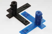 - The belt pulleys for the X and Y axes are horribly wobbly. You'll have to print yourself decent ones (e.g. using this thing) to achieve accurate X and Y resolution. The first picture shows the difference. The blue gauge was printed using the stock pulleys, the black one with the new pulleys.