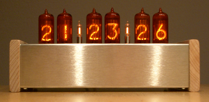 When I first saw one of those clocks in a shop in Freiburg, it was obvious that I needed one of them. But I did not want to spend EUR 249.- on something I knew I could do myself. I then checked the WWW for DIY Nixie clocks. There are some, but none was DCF77 controlled and totally free. So I started my own project. If you want to make your own, you can download everything you need (apart from the hardware of course ;-) from this site.
